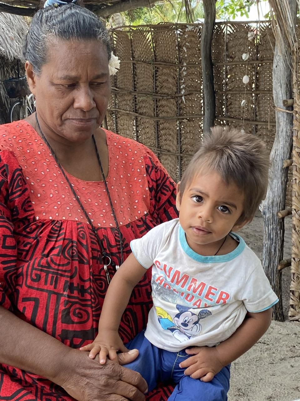 Ses petit fils Maiore (18 mois) et Jean Louis (6mois) tous deux très éveillés viennent égayer son quotidien.