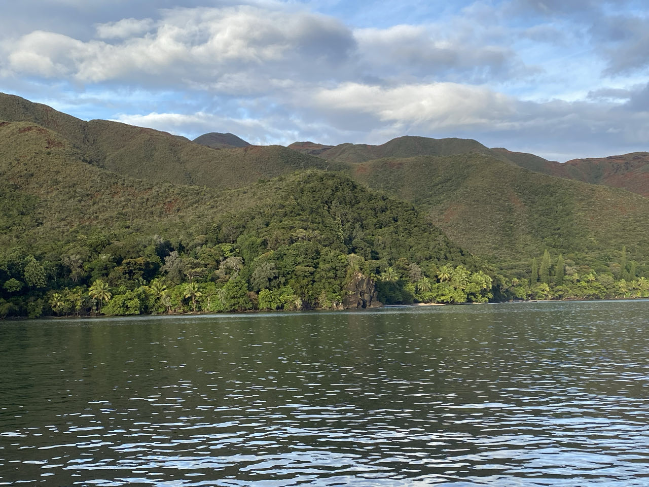 Le lendemain matin, soleil de retour : nous découvrons la beauté sauvage et calme de cette baie aux airs de Marquises. La nature est reine en Nouvelle Caledonie, décidément si belle et riche. Nous nous nourrissons de cette beauté de la création offerte à nos yeux d’explorateurs curieux .