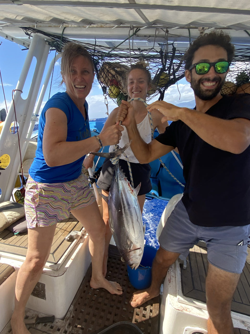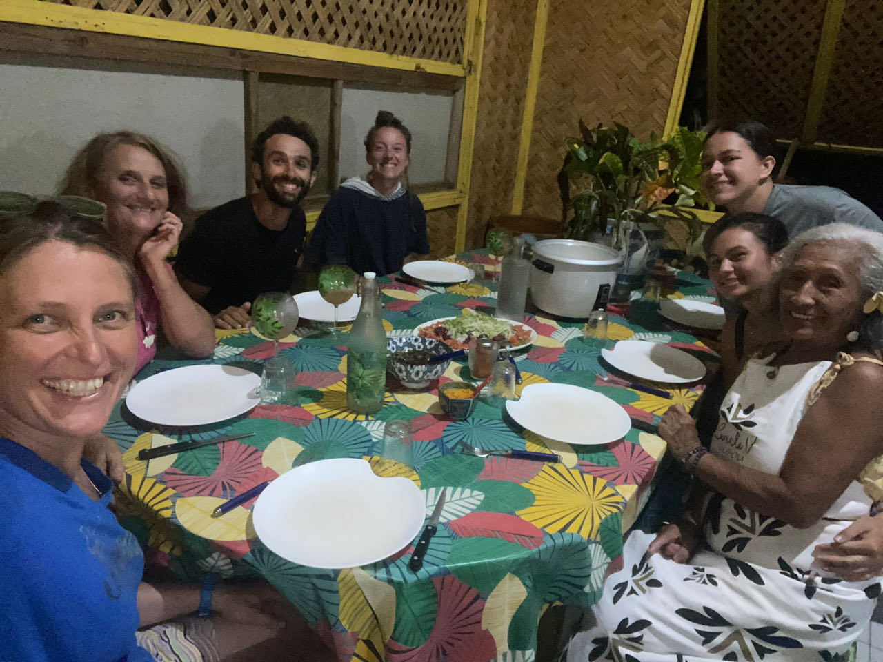 Arrivés hier à Tahaa chez Perrette notre maman Tahitienne, avec une grosse bonite en cadeau. Soirée de départ et d’au revoir car demain nous tentons de partir à la rencontre des Soignants des Australes : les conditions météo ne sont pas favorables mais il y a une petite fenêtre possible, avant l’arrivée d’un nouveau front…